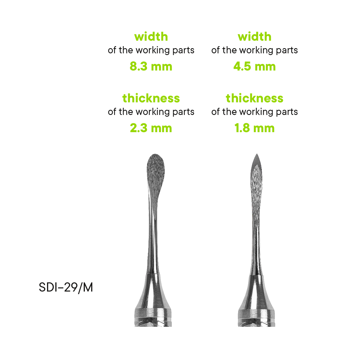 Pro oddělení okostice od kosti a odpreparování pevných chrupavčitých tkání.