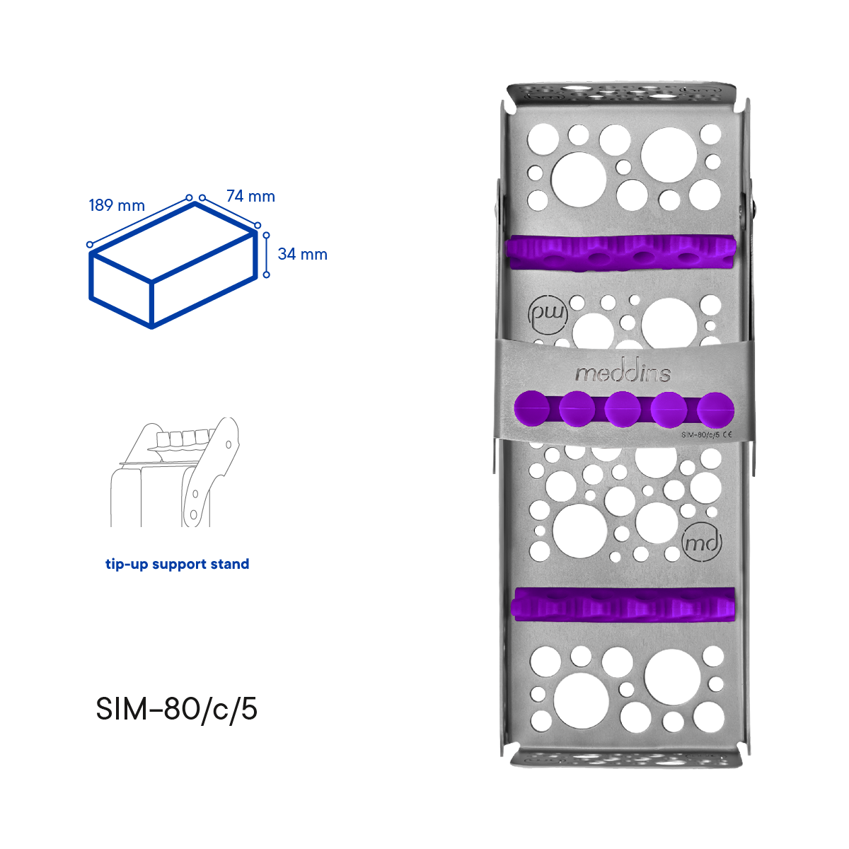 Kazeta pojme 5 stomatologických nástrojů a díky speciálnímu tvaru úchytů nástroje v kazetě nekloužou a jsou spolehlivě chráněny před poškozením během přepravy.