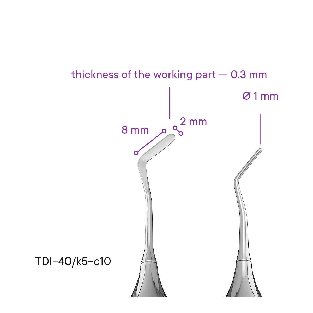 - Díky retenčnímu vroubkování na vnějším povrchu rukojeti zubní nástroj neklouže v prstech.